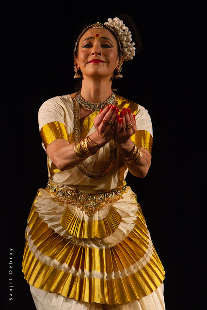 Mohini Attam en Inde à l’école du Kalamandalam avec Kalamandalam Leelamma, puis avec Padmashree Kalamandalam Ksheimavathy et Sri Devi Rajan. Ayant vécu de longues années au Kérala, elle pratique aussi le chant carnatique, des rôles de Kathakali, le Kalarippayatt, les danses populaires du Kerala.